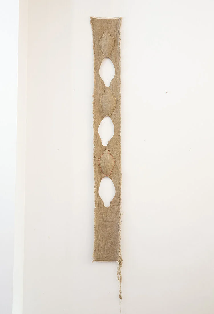 Maria Aguilera-Mendoza Whole sometimes Belgian Linen, Bay Leaves, Cotton, Interfacing.  1900 x 230 x 50 cm